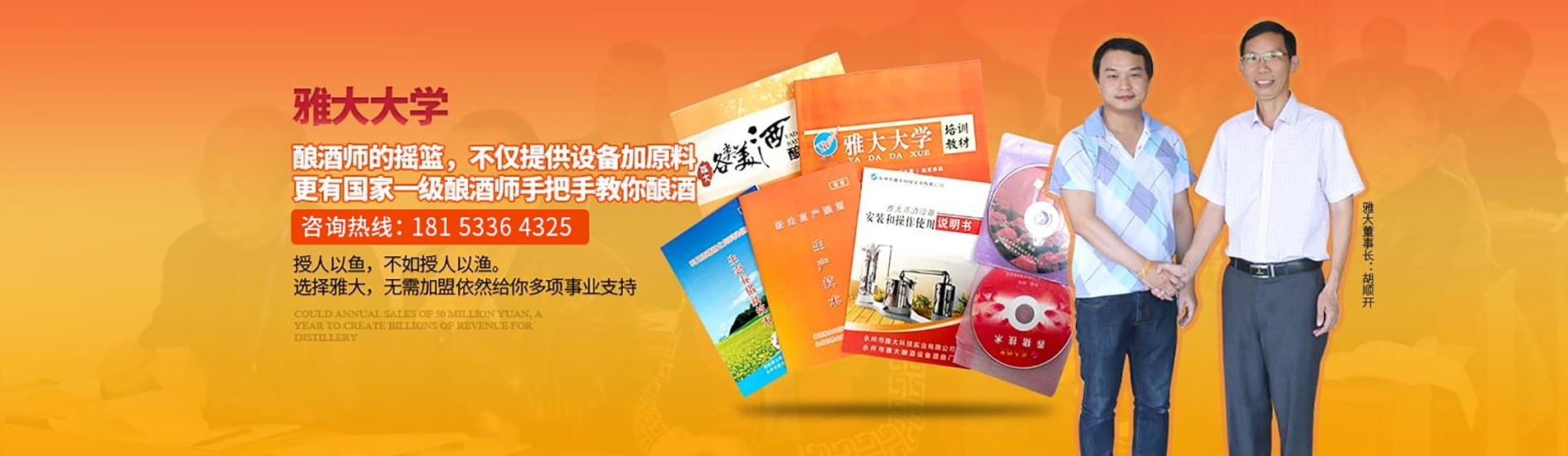 永州市雅大科技實業(yè)有限公司成立于1999年,位于湖南省南部國家歷史文化名城—永州市,是一家集釀酒技術(shù)研究、釀酒設(shè)備、釀酒酒曲生產(chǎn)銷售于一體的國家高新技術(shù)企業(yè)。擁有標準房、科技培訓(xùn)樓13500m7,公司連續(xù)十年被省、市江商局評為重合同守信用單位,榮獲201 7年中國釀酒設(shè)備行業(yè)新標桿企業(yè)獎。可提供釀酒項目整體解決方案,包括釀酒項目選擇、酒廠規(guī)劃設(shè)計、釀酒技術(shù)培訓(xùn),酒類產(chǎn)品設(shè)計、包裝瓶(盒)設(shè)計、酒品營銷策劃、協(xié)助辦理資質(zhì)、編制可行性報告等方面。